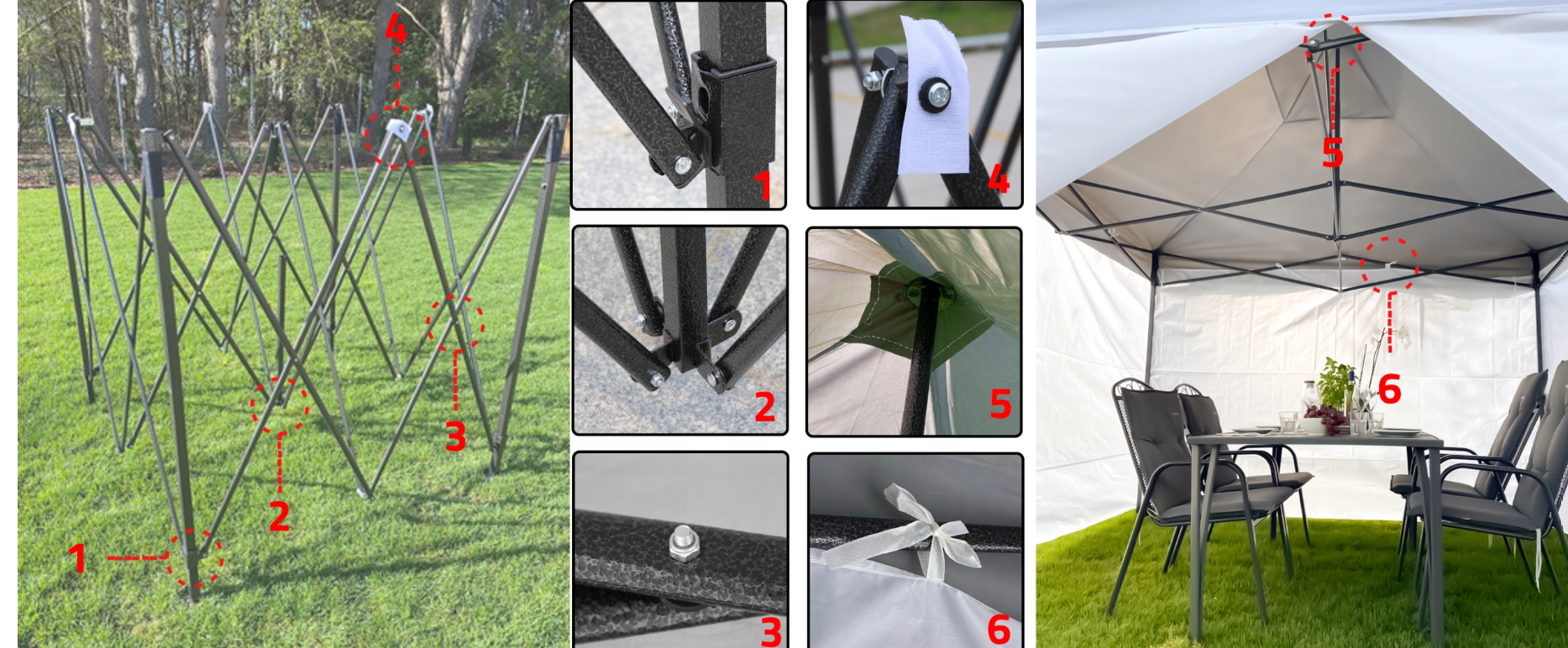 Nu aveti nevoie de niciun instrument pentru a asambla pavilionul. Toate elementele necesare pentru instalare sunt incluse in kit.