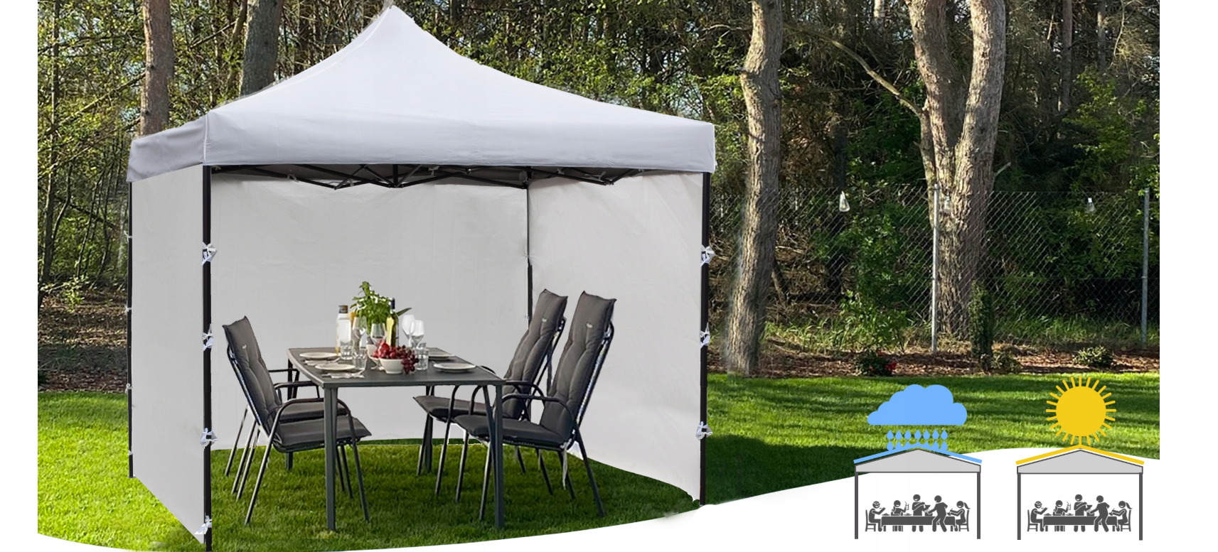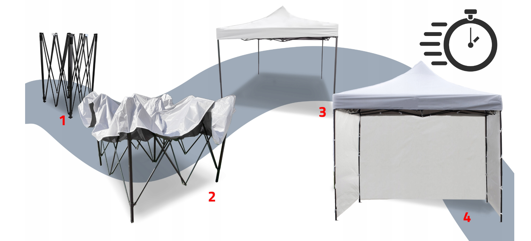 Pavilionul este foarte usor de asamblat si dezasamblat. Este nevoie de o duzina de minute pentru a configura si nu necesita ajutorul altor persoane!