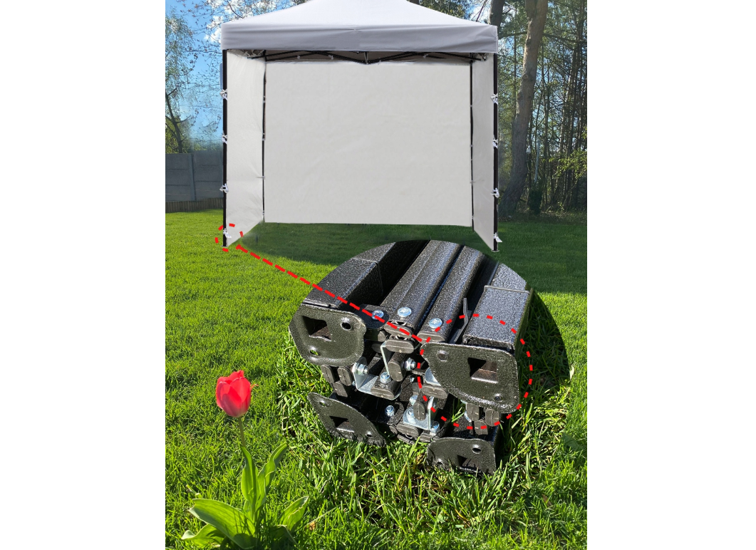 In plus, constructia stabila a cortului este asigurata de picioare cu orificii de ancorare. Acestea ofera posibilitatea de atasare solida pe diferite tipuri de suprafete :
