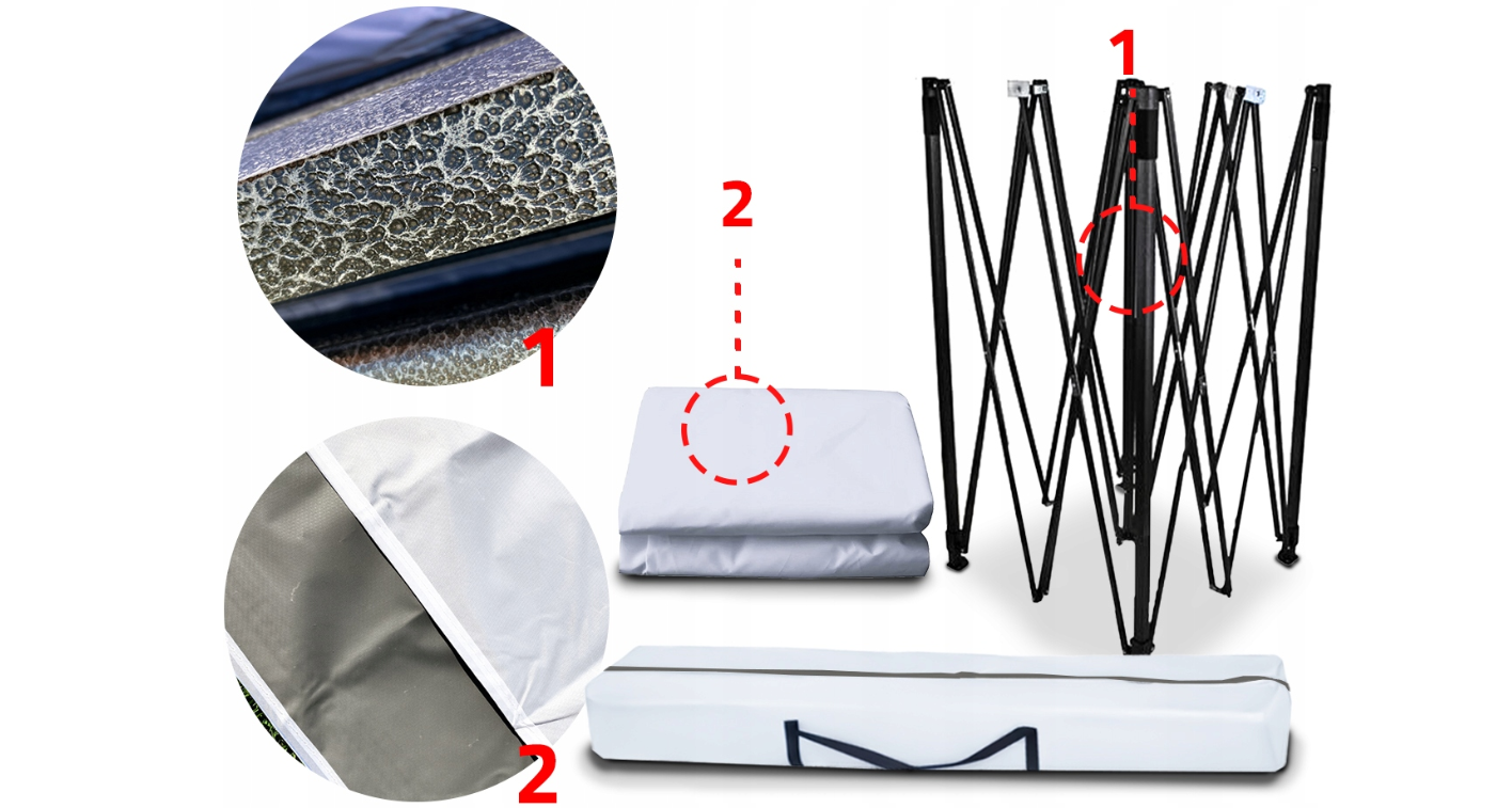 Sistemul de blocare faciliteaza asamblarea, dezasamblarea si reglarea pavilionului pliabil.