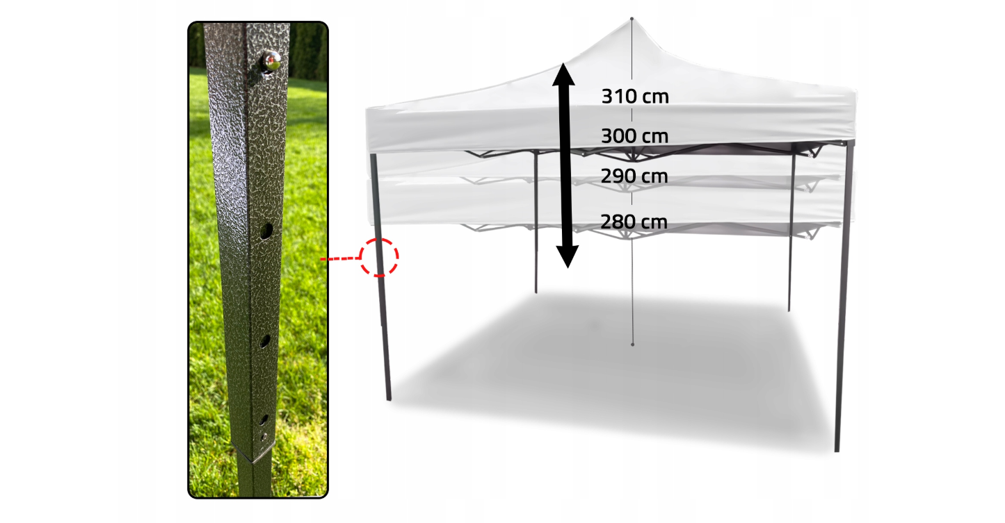 Inaltimea pavilionului poate fi reglata pe 4 niveluri (280, 290, 300 si 310 cm) , astfel incat sa il puteti adapta cu usurinta nevoilor dumneavoastra.