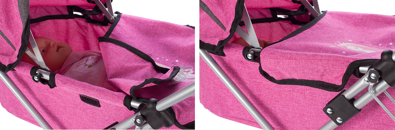Carucior roz pentru papusi cu geanta Princess, Malplay 107210