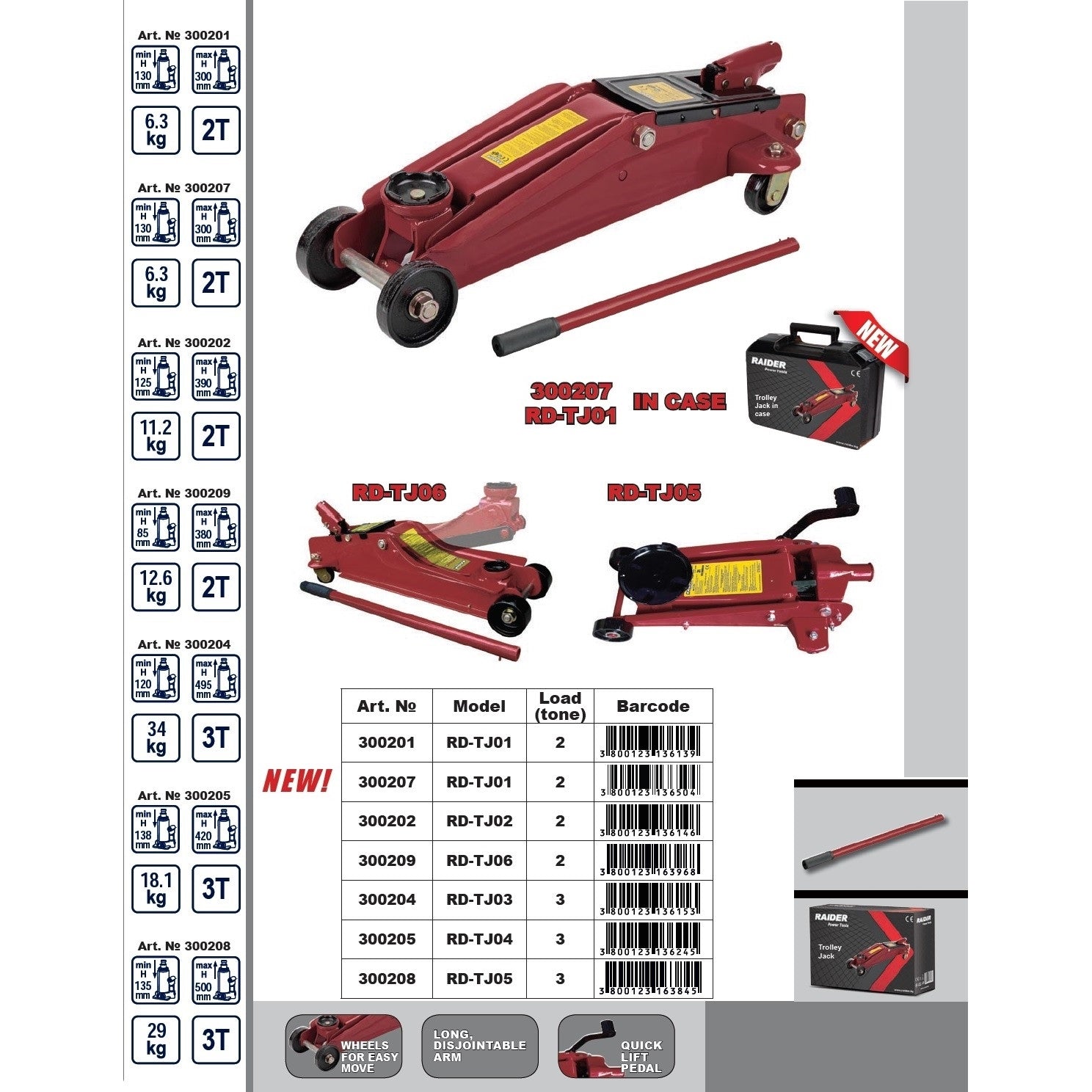 Cric hidraulic 2T, inaltime 130-300mm RD-TJ01, Raider 300207
