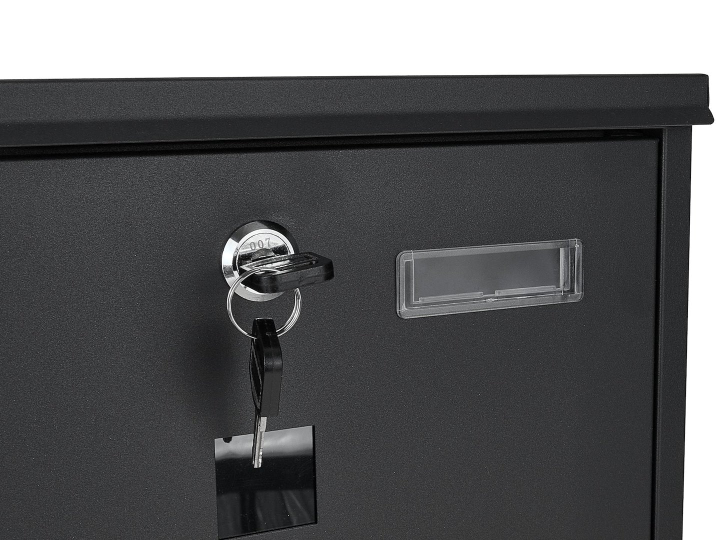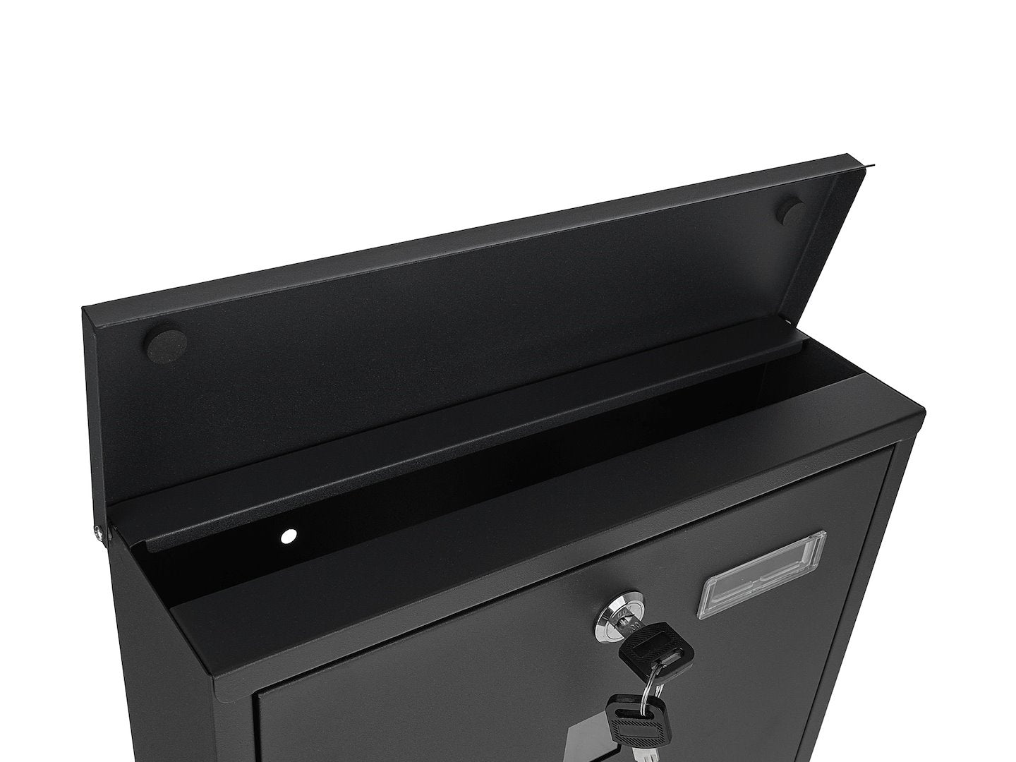 Aceasta cutie postala moderna , cu dimensiunile de 34 x 30,7 x 10 cm, este solutia perfecta pentru cei care apreciaza eleganta, durabilitatea si securitatea corespondentei lor. Fabricata din otel solid, vopsit in camp electrostatic , de culoare negru mat , se potriveste perfect cu fatadele contemporane si usile de intrare. Vitrajul subtil al usii adauga o nota moderna si va permite sa verificati rapid daca exista corespondenta in interior.