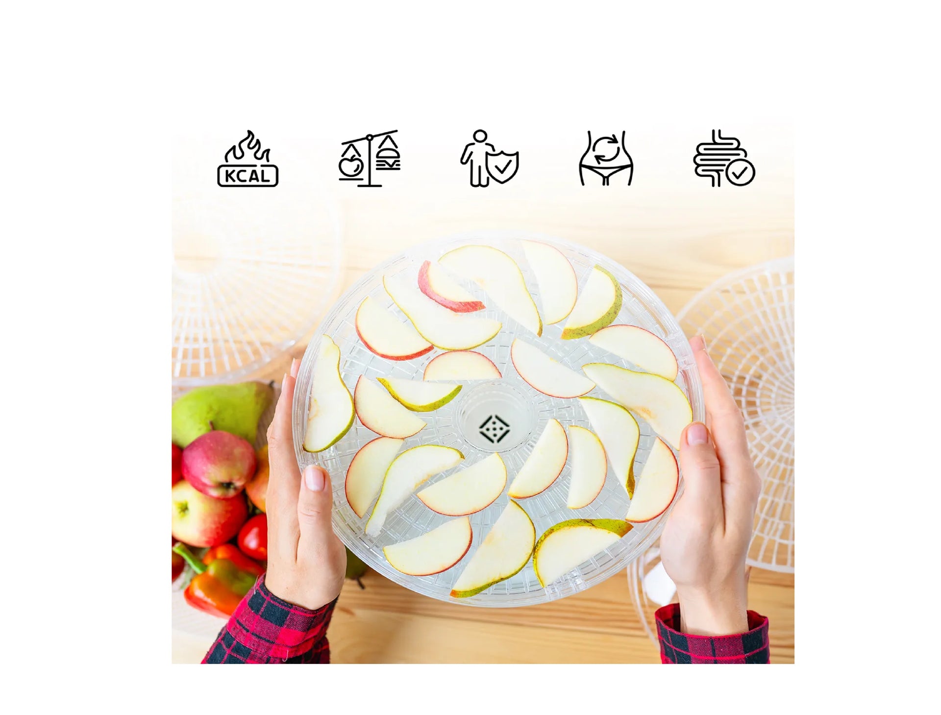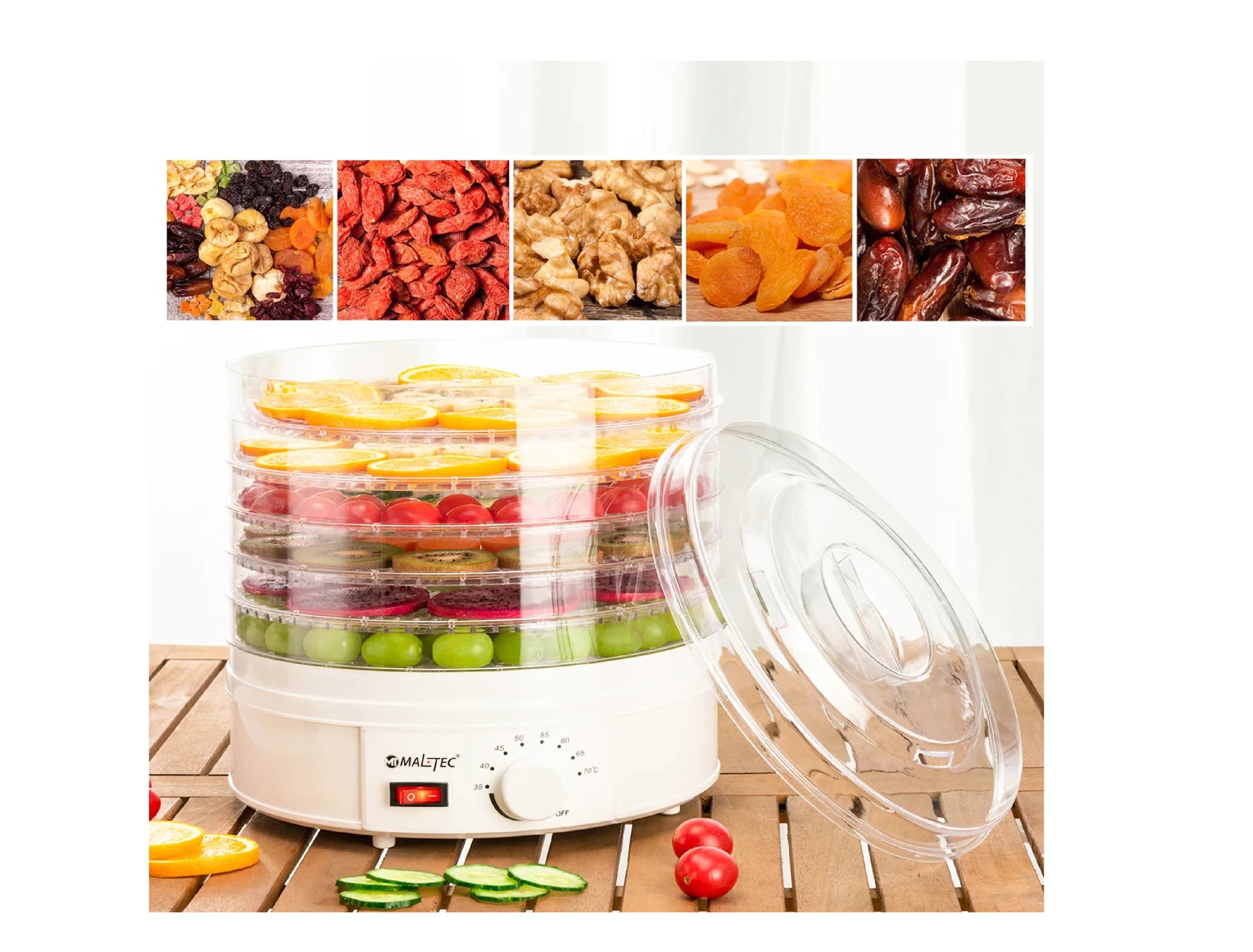 Deshidratorul de alimente va va permite, de asemenea, sa uscati fructele, legumele, ierburile si alte produse alimentare pe tot parcursul anului!