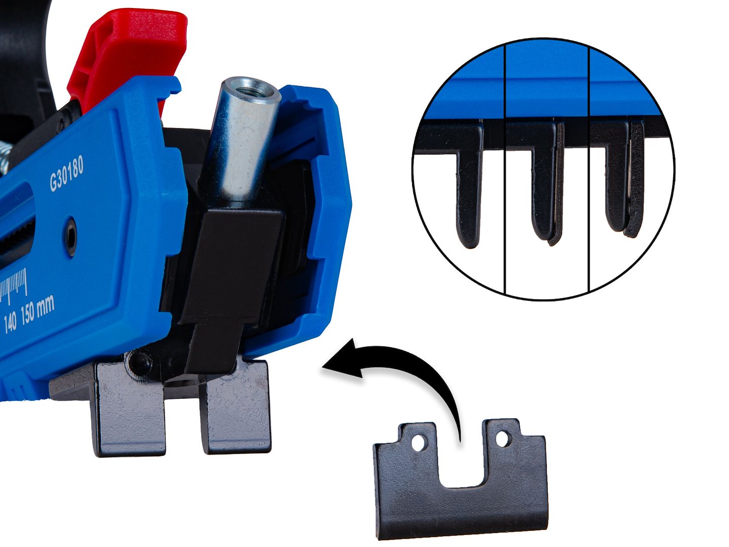 Scala latimii placii [90–150 mm] – permite ajustarea rapida la dimensiunile cele mai frecvent utilizate fara a fi nevoie de masurare si corectare.