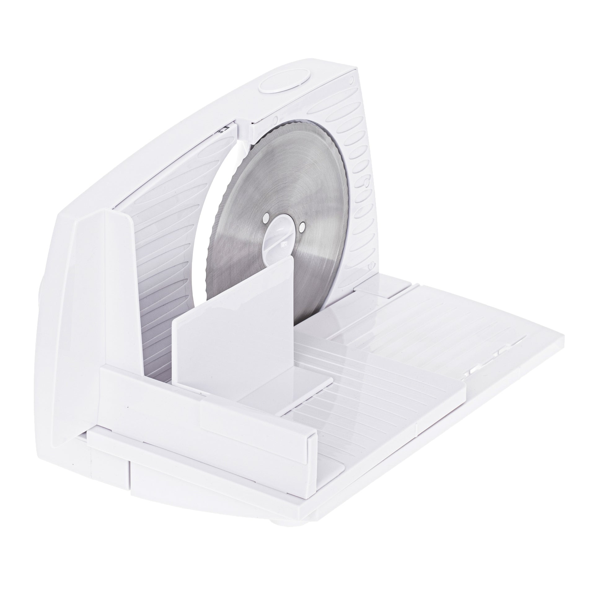 Aparat de feliat compact, sigur, usor de pliat. Perfect pentru taiere cu un impingator detasabil. Plasticul rezistent din care este fabricat il face usor de transportat. Lama de otel inoxidabil de inalta calitate va permite sa taiati carnea curata in felii subtiri si sa taiati o felie solida de paine de tara. Grosimea felierii poate fi usor ajustata. Intreaga feliere a alimentelor poate fi usor dezasamblata in bucati, ceea ce face curatarea usoara. Ocupa foarte putin spatiu. Datorita optiunii de pliere, dupa utilizare il puteti incadra in dulapul de bucatarie. Butonul de siguranta protejeaza impotriva ranilor accidentale. De asemenea, impingatorul din plastic este conceput pentru a va proteja degetele. Picioarele din cauciuc impiedica miscarea taietorului.