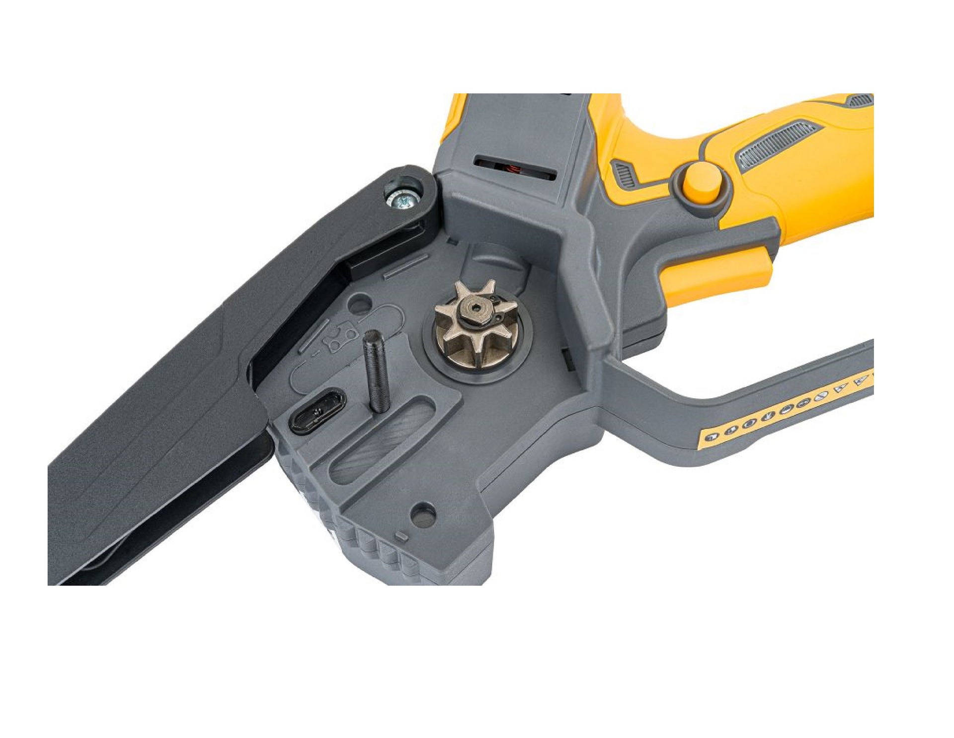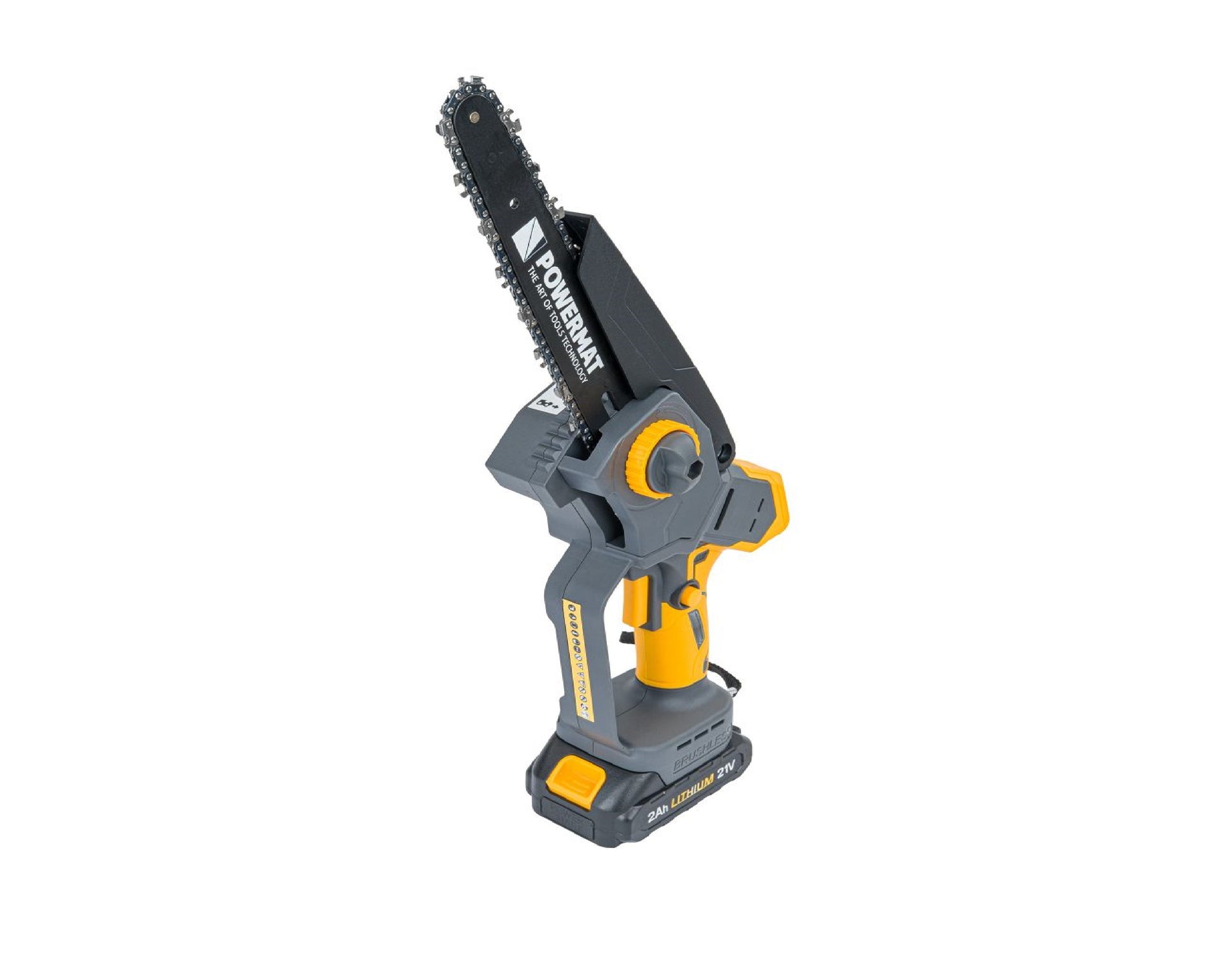Afisajul LCD inovator de pe partea de sus a ferastraului cu lant arata nivelul de incarcare a bateriei in timp real , oferindu-va control deplin asupra muncii dvs. Aceasta este singura solutie de pe piata care combina confortul, precizia si tehnologia moderna!