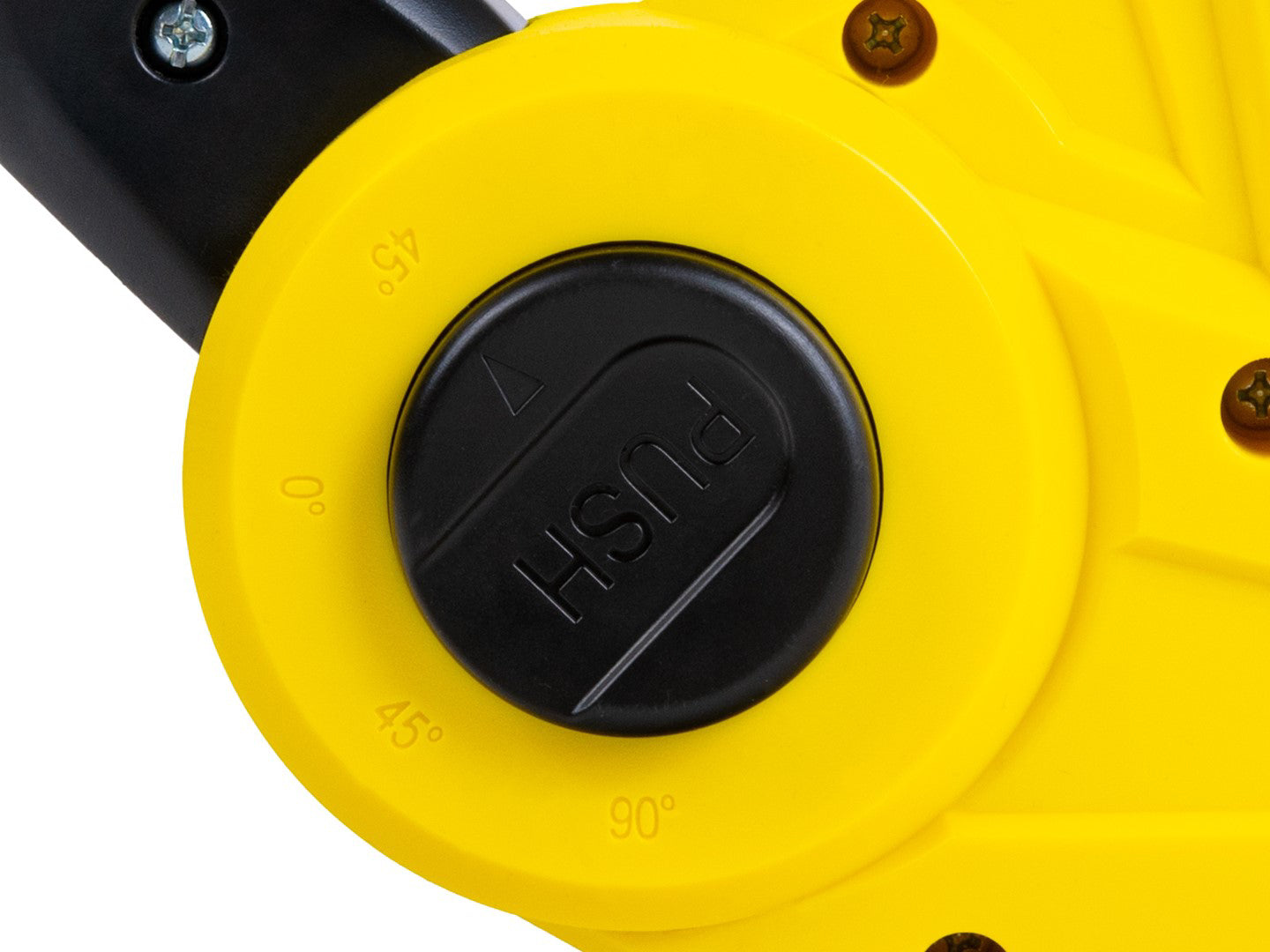 - Avantajul cheie al acestui instrument este un motor puternic de 550 W si o lama din otel de inalta calitate, cu o lungime de taiere de 55 cm , care poate manipula cu usurinta ramuri de pana la 20 mm in diametru. Sistemul unitatii de taiere cu rotatie inversa asigura o taiere mai curata si mai rapida, iar capacitatea de a regla unghiul capului (de la -45° la 90°) permite controlul deplin asupra directiei de lucru.