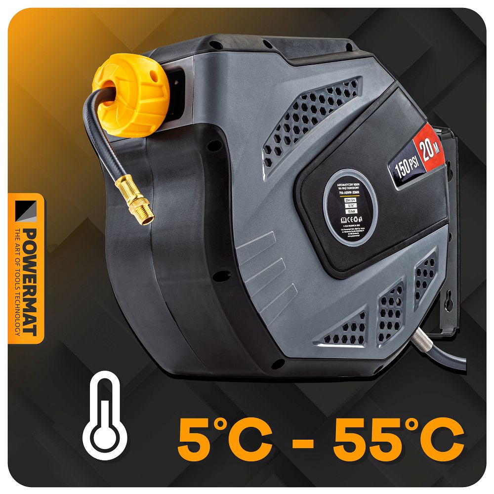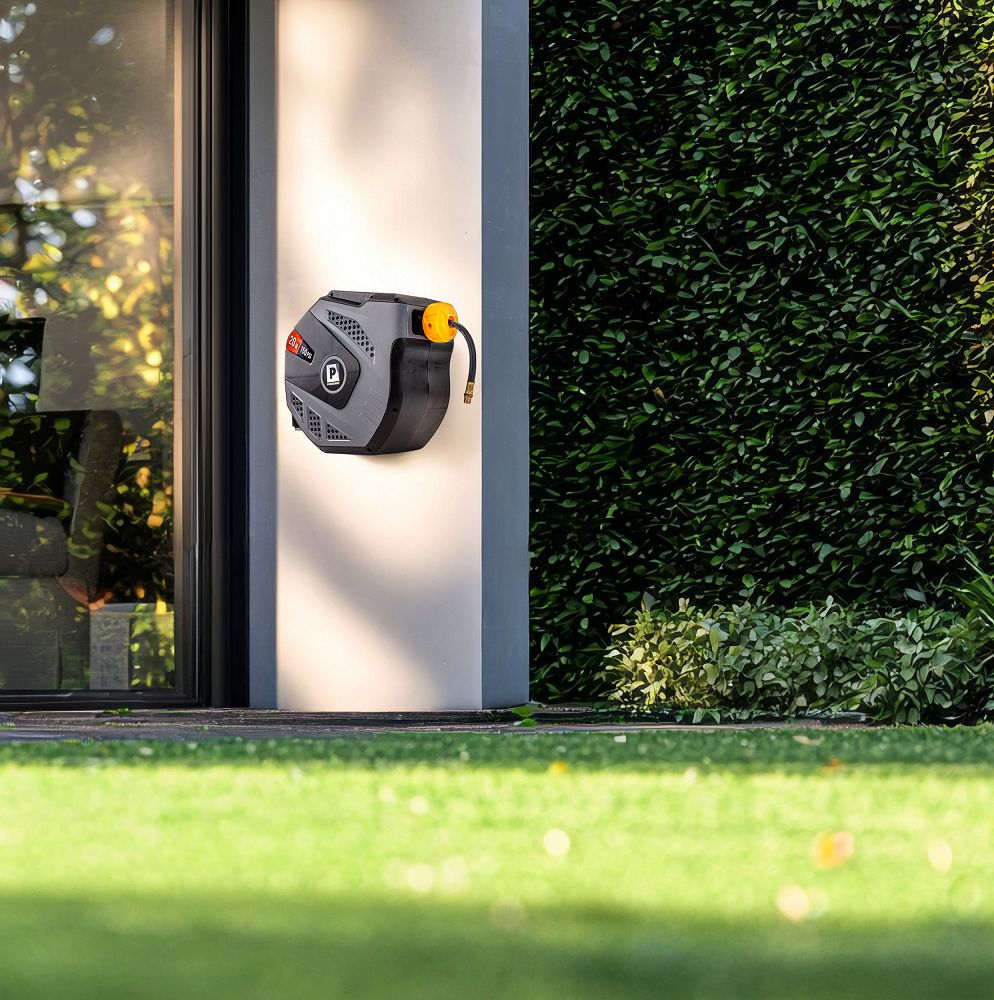 Tamburul pneumatic automat pentru furtun este perfect pentru utilizare in ateliere, parcele, gradini si spatii utilitare casnice.