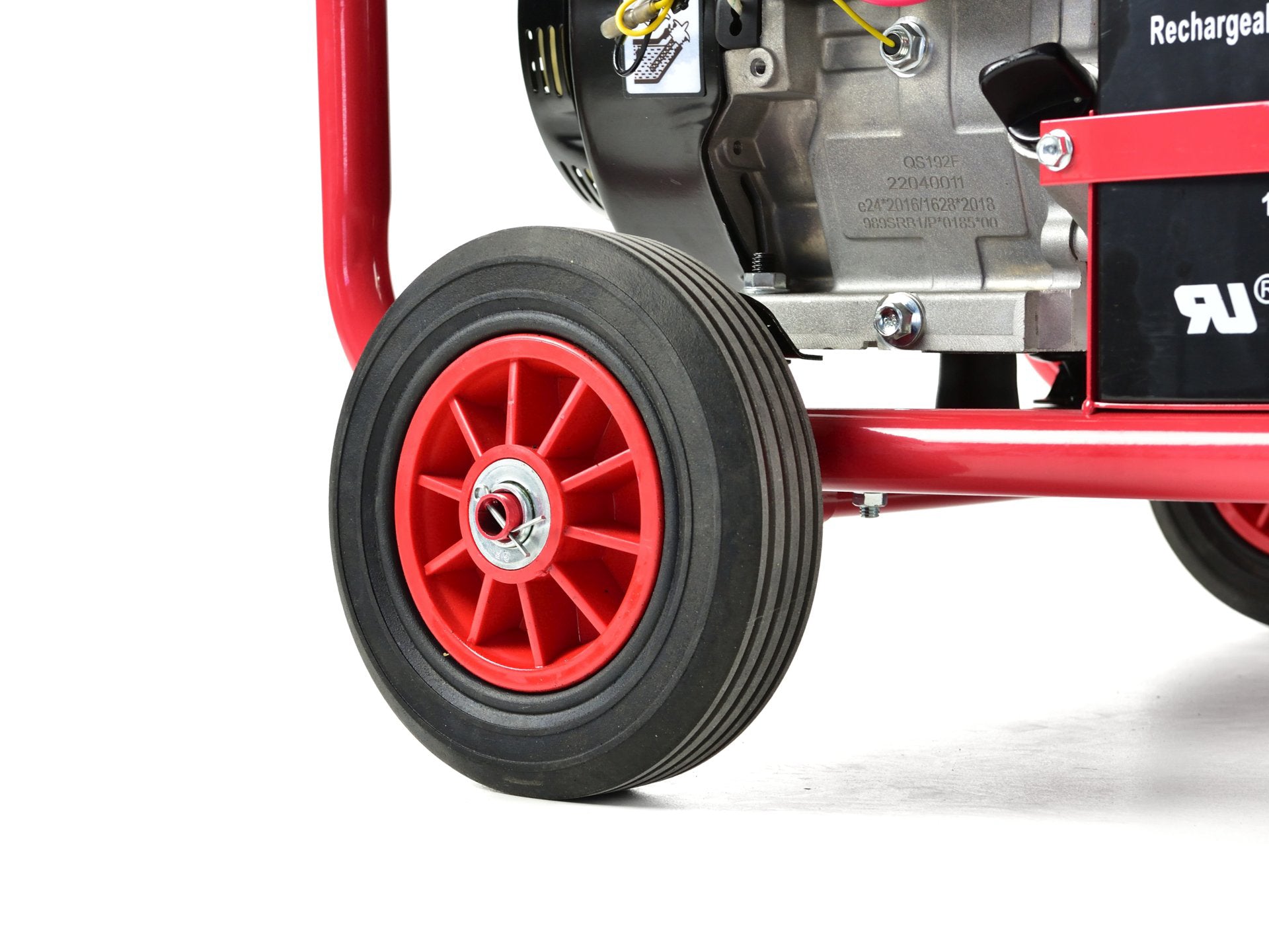 Generator de curent profesional echipat cu un motor cu ardere cu o capacitate de 456cc si o putere de 17 CP. Generatorul grupului electrogen are o infasurare din cupru , datorita careia este capabil sa genereze o putere maxima temporara de 8500W . Puterea constanta pe care o poate incarca generatorul este de 7500W pentru o priza de 400V si de 2500W pentru fiecare dintre prizele de 230W . Regulatorul automat de tensiune (AVR) al dispozitivului, datorita monitorizarii constante si corectarii imediate, mentine tensiunea de iesire la o valoare constanta, indiferent de sarcina si temperatura de functionare. Rezervorul de combustibil cu o capacitate de 25l permite functionarea neintrerupta (la sarcina medie) timp de aproximativ 7 ore.