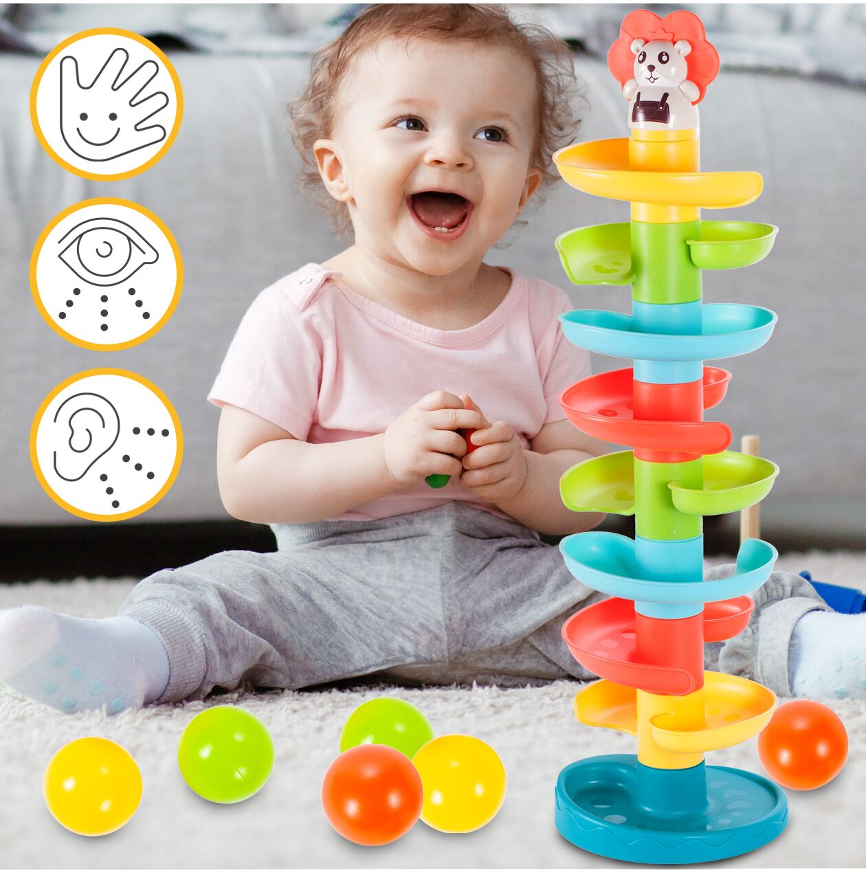 Toboganul cu bile este o jucarie care combina distractia cu invatarea. Pe masura ce copiii arunca bilele in varful turnului, ei observa miscarea lor in spirala, ceea ce dezvolta abilitati cognitive precum intelegerea cauzei si efectului. Jucaria promoveaza, de asemenea, dezvoltarea coordonarii mana-ochi, deoarece cei mici apuca bilele si le arunca in varf.