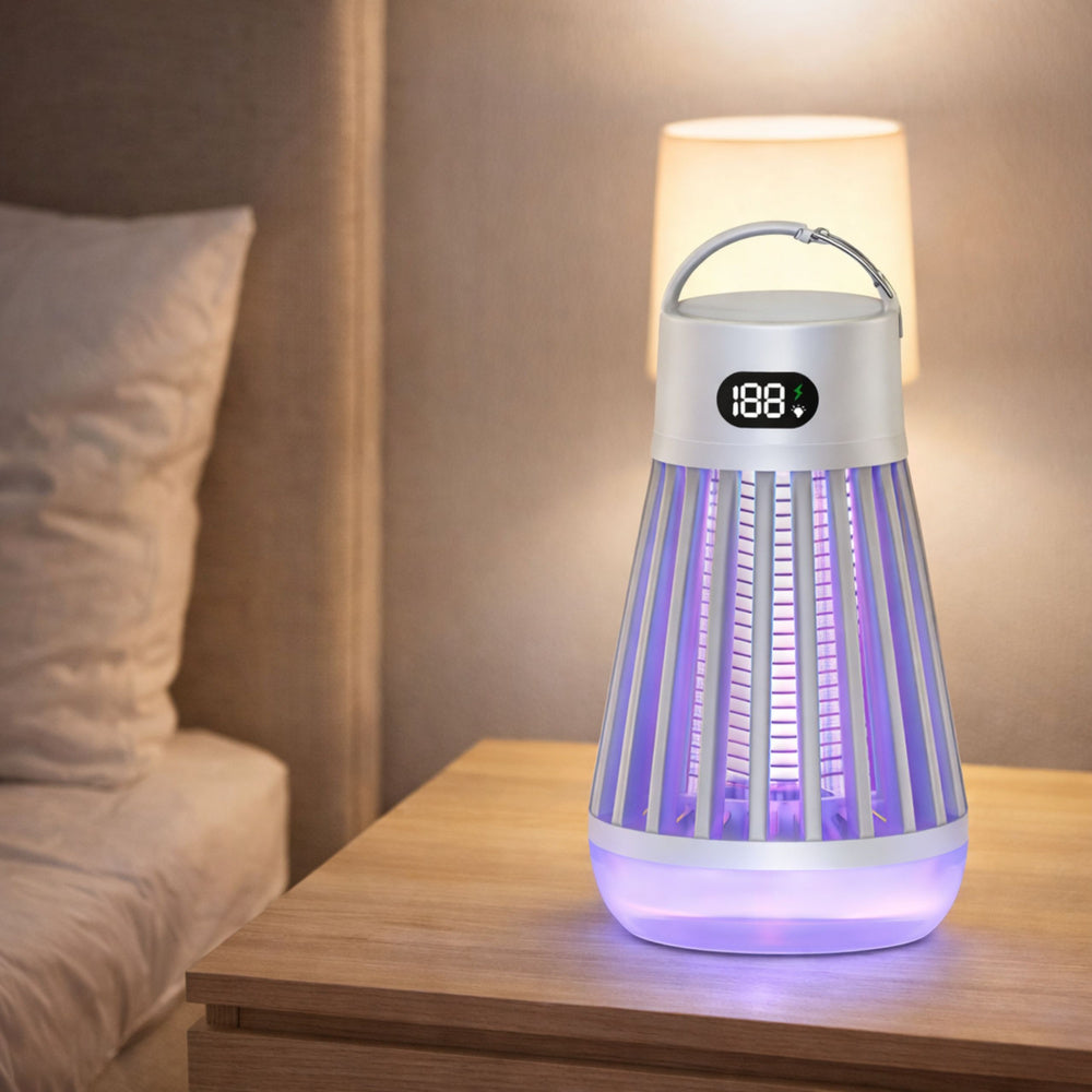 Dispozitivul are o baterie incorporata de 2000 mAh care ofera pana la 9 ore de functionare cu o singura incarcare. Incarcarea se face prin intermediul unui cablu USB Type-C. Un afisaj digital clar informeaza despre starea de functionare a dispozitivului. Lampa este usor de curatat datorita periei incluse, permitandu-va sa indepartati rapid insectele din interior.
