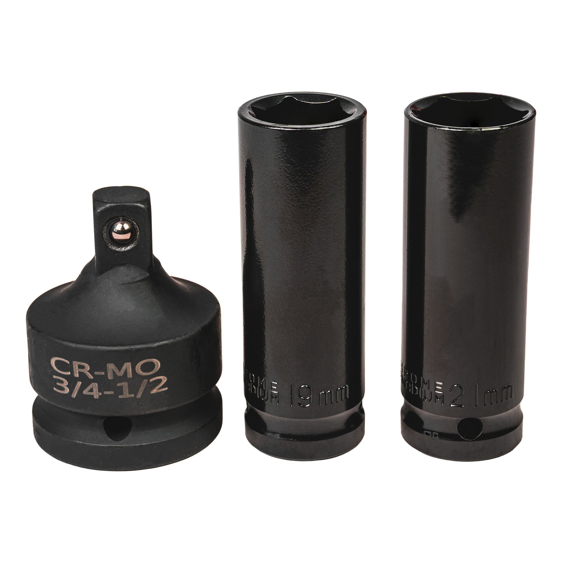 - Patrat de antrenare 3/4" – ofera rezistenta si stabilitate la utilizarea cu tubulare mari; setul include si un adaptor 3/4" → 1/2", care extinde compatibilitatea cu diverse accesorii.