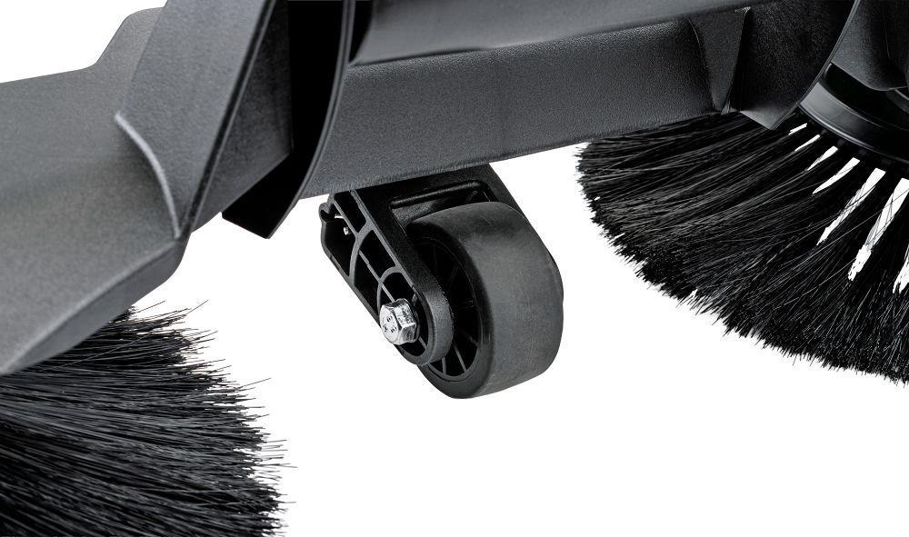 Echipat cu o perie cilindrica si doua perii laterale cu peri lungi, garanteaza o curatare temeinica, chiar si la margini si colturi. Periile colecteaza eficient praful, nisipul, frunzele si resturile mici.