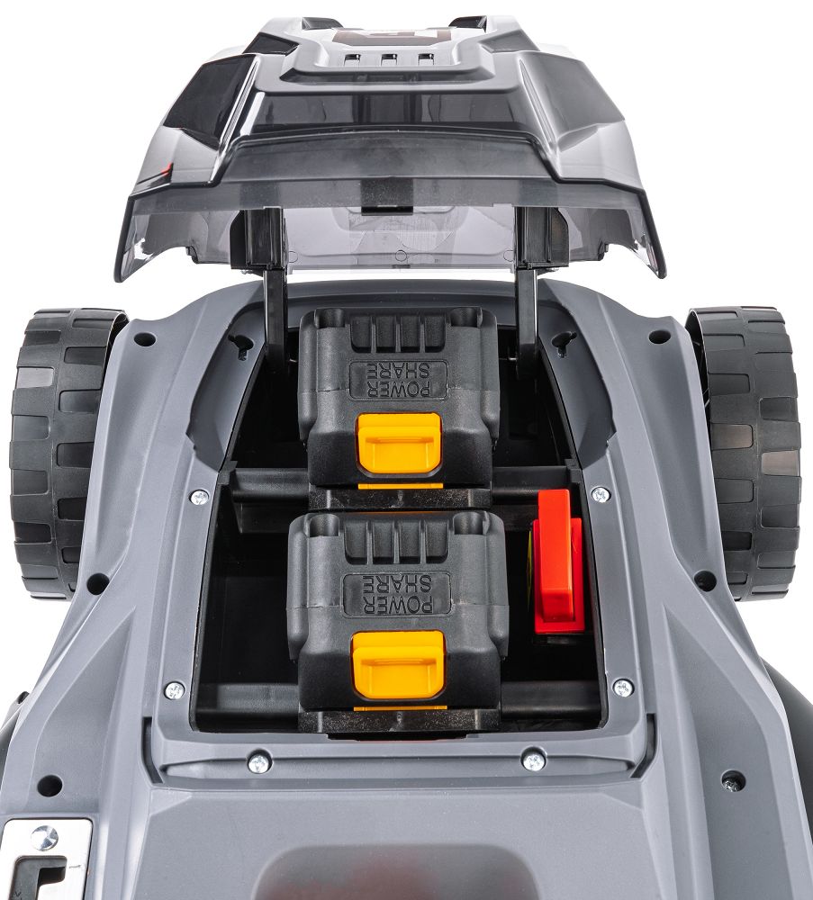 Masina de tuns iarba este compatibila cu bateriile sistemului POWER SHARE, care permite utilizarea interschimbabila a unei baterii in diferite dispozitive de aceeasi marca. Aceasta solutie va permite sa economisiti la achizitionarea de baterii suplimentare si sa prelungiti timpul de functionare prin inlocuirea rapida a bateriilor.