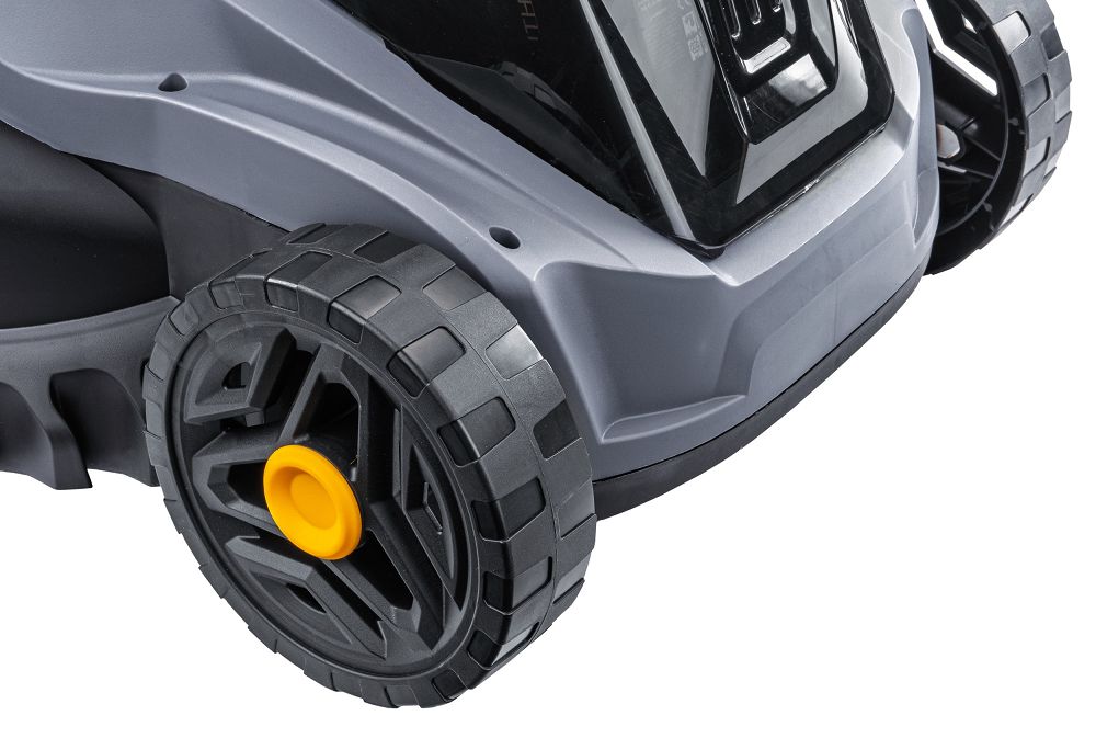 Carcasa ranforsata cu pereti dubli protejeaza impotriva daunelor mecanice cauzate de ex. pietre. Latimea de taiere de 38 cm asigura un ritm de lucru rapid, iar designul compact si usor face ca masina de tuns iarba sa fie perfecta pentru terenuri mai mici si medii.