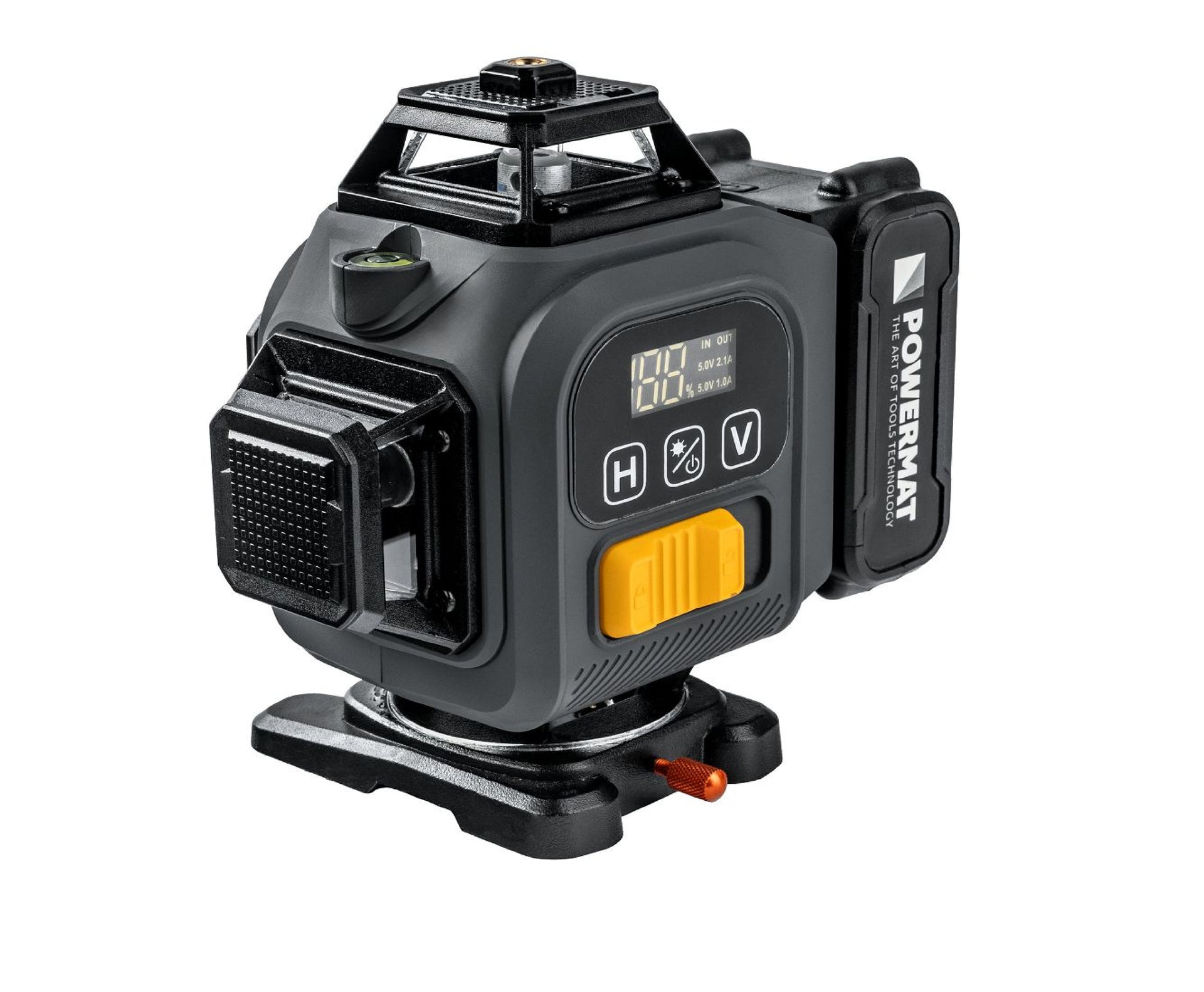 Nivela este alimentata de o baterie litiu-ion de 4,2 V si 3600 mAh. Nivelul de incarcare este afisat pe ecranul LCD.
