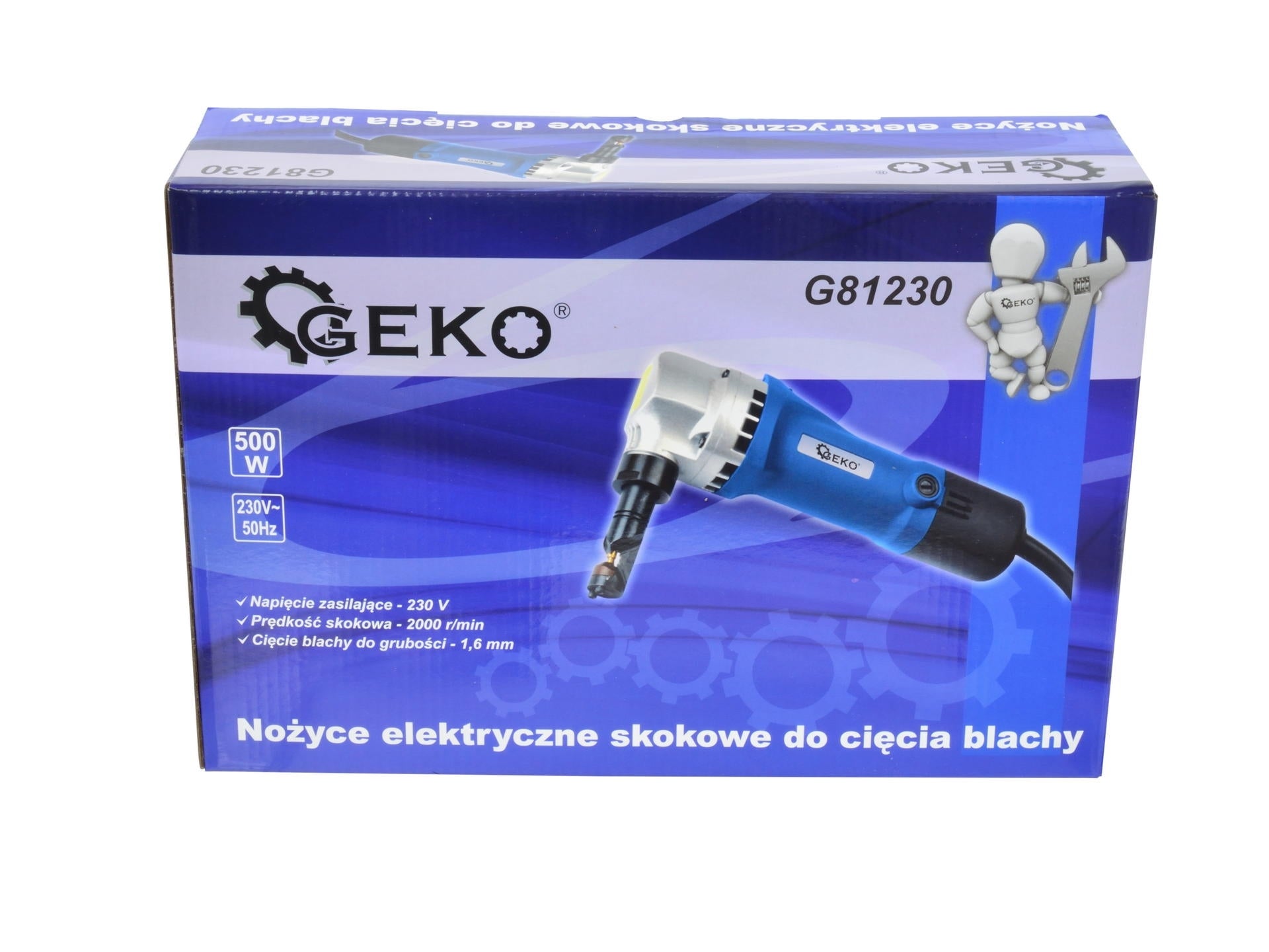 Foarfece electric pentru taiat tabla. Foarfecele permit taierea precisa a diferitelor tipuri de foi metalice. Perfect pentru taierea placilor drepte, trapezoidale, ondulate, a placilor metalice etc. Pot face fata cu usurinta taieturilor drepte, curbelor si taierii conform unui sablon desemnat. Dispozitivul este echipat cu un motor electric eficient de 500W care genereaza o cursa a cutitului la nivelul de 2000 rpm. Acest lucru asigura taierea rapida si precisa a tablelor cu grosimea de pana la 2,3 mm (în cazul tablei de aluminiu).