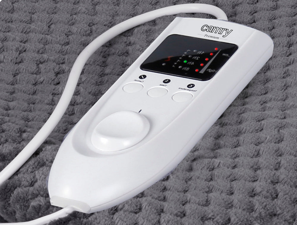 Patura electrica Camry va ofera caldura relaxanta si confort. Este recomandat persoanelor care au grija de sanatatea lor. Patura electrica calmeaza nevralgiile, ajuta la relaxarea muschilor si imbunatateste circulatia sangelui. Recomandat in tratarea simptomelor artritei si reumatismului Va ofera o distributie rapida si uniforma a caldurii. Acest lucru va permite sa va odihniti cu placere intr-un pat cald in doar cateva minute dupa pornirea paturii electrice. Patura este confectionata din material moale si bland. Il poti spala cu usurinta dupa ce ai detasat un regulator de temperatura si un cablu de alimentare. Controlerul de temperatura va permite sa alegeti nivelul de temperatura si sa asigurati protectia la supraincalzire.