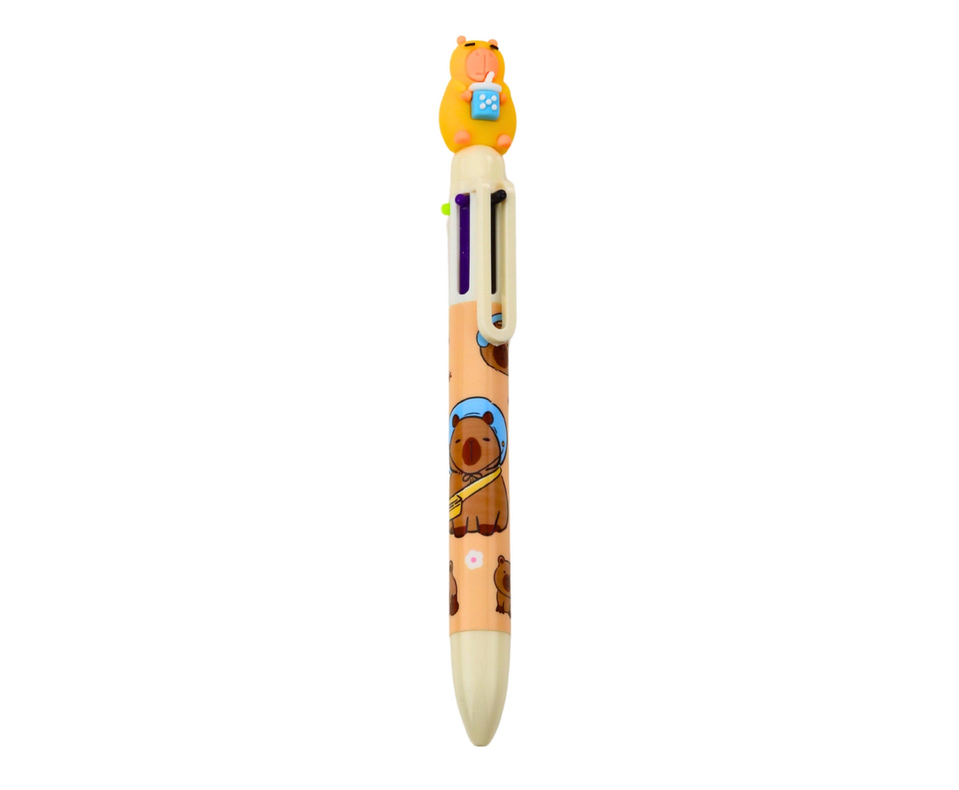 Stiloul colorat cu motiv capibara nu este doar un instrument de scris functional, ci si un gadget distractiv care va diversifica notitele scolare si de acasa. Stiloul contine pana la 6 culori de cerneala intr-o singura carcasa, ceea ce permite schimbarea convenabila a culorilor.