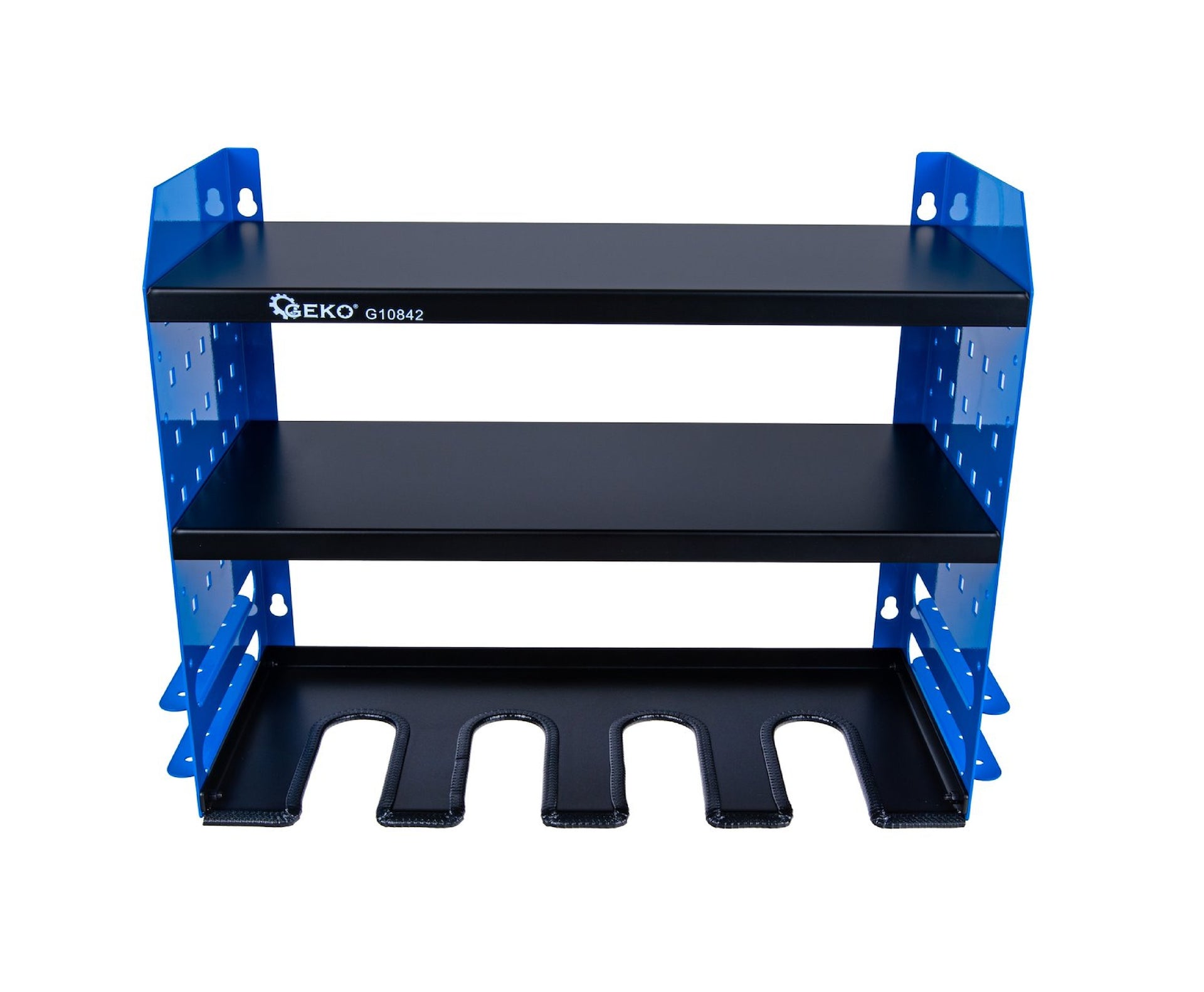 - Sistem de montare pe 7 niveluri – reglarea individuala a inaltimii raftului in functie de uneltele specifice permite utilizarea optima a spatiului pentru echipamente de diferite dimensiuni.
