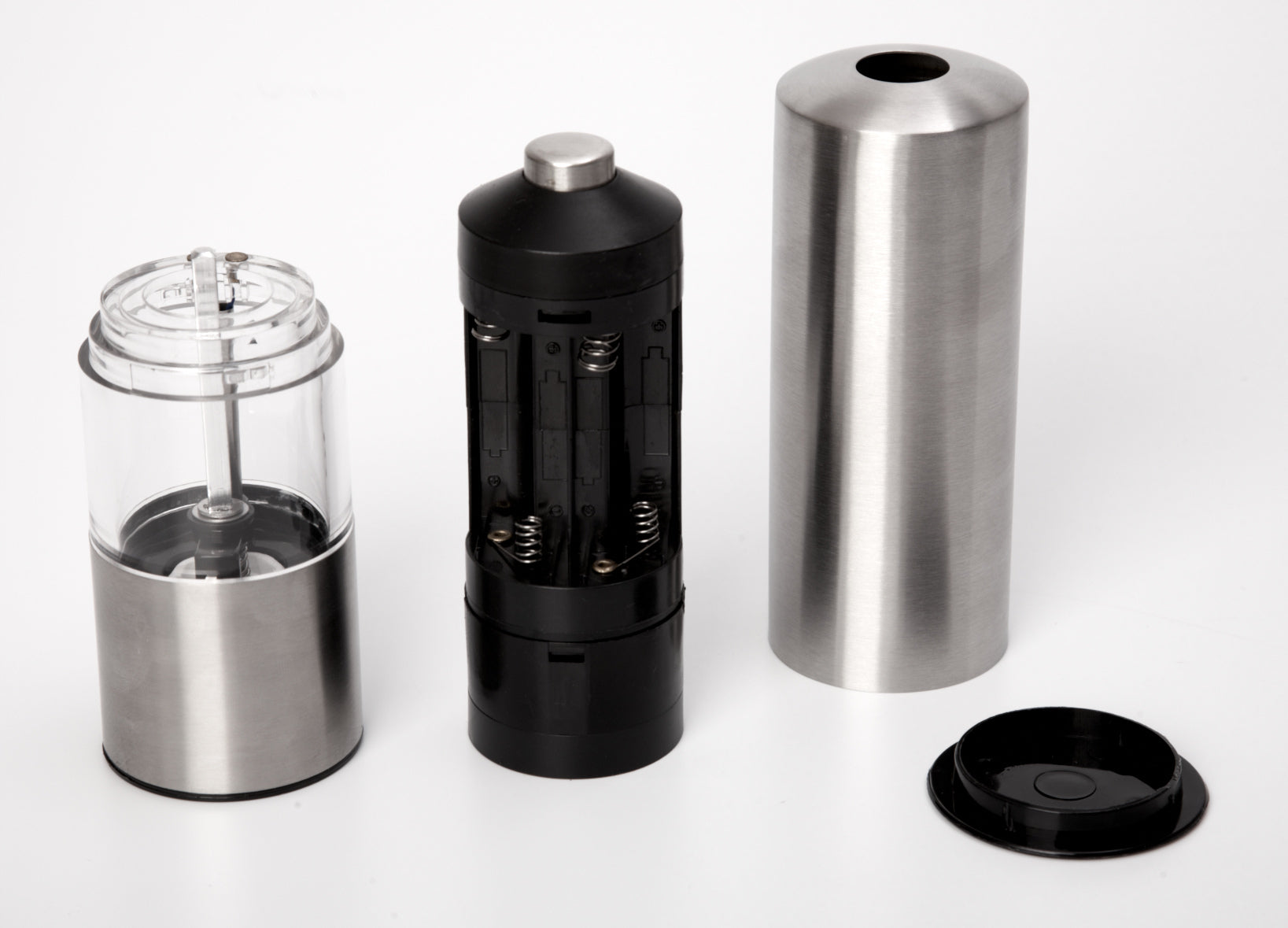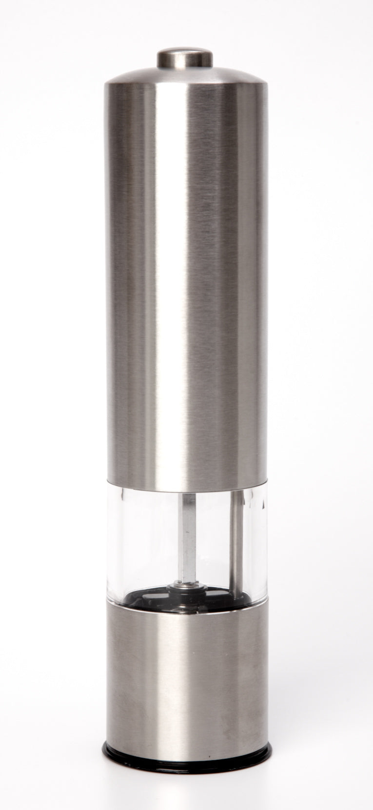 O rasnita electrica este o solutie perfecta atunci cand dorim sa condimentam felul de mancare cu putin piper si sare proaspat macinat. Este fabricat din otel inoxidabil cu cornuri ceramice de inalta calitate. Exista posibilitatea de a regla grosieritatea. Este alimentat cu 4 baterii AA.