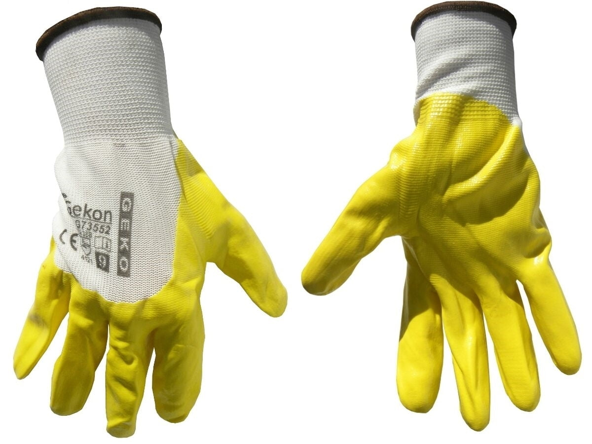 Mănuși de protecție din bumbac, acoperite cu nitril. Mănușile sunt folosite pentru toate tipurile de lucrări mecanice, de grădină, de construcții și de uz casnic.