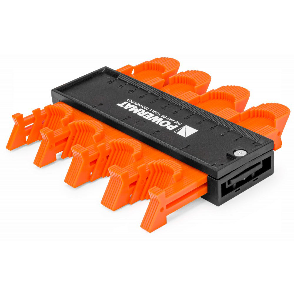 Sablonul de forma POWERMAT 120mm / 5" este utilizat pentru a mapa contururile neregulate si apoi pentru a le transfera pe suprafata procesata. Este deosebit de util in timpul lucrarilor de placare si finisare. A fost fabricat din plastic rezistent la apa. Are o scala de masurare precisa exprimata in centimetri si inch.