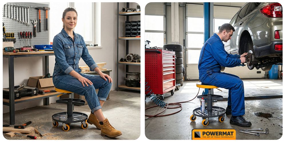 Scaun telescopic pentru atelier PM-SWA-150T, 400-520 mm, Powermat PM1455