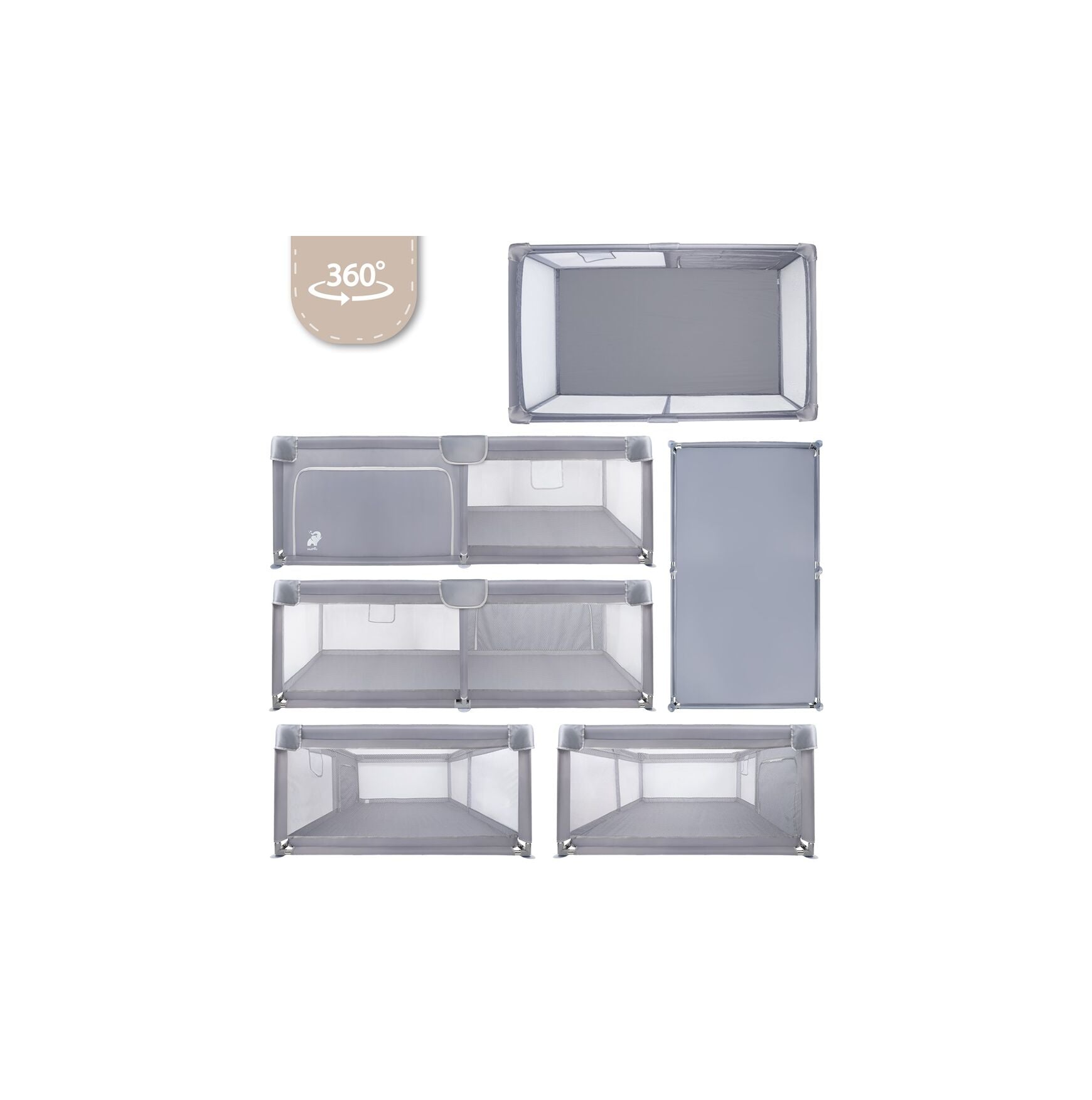 Peretii din plasa de pe toate cele patru laturi ale tarcului asigura o circulatie constanta a aerului si o vizibilitate excelenta atat pentru parinte, cat si pentru copil. Acestia va permit sa aveti un ochi nestingherit asupra micutului dumneavoastra, iar copilul dumneavoastra se simte in siguranta in imprejurimi. Plasa moale si flexibila este o alternativa excelenta la balustradele rigide, reducand riscul de impact la cadere, tarandu-se sau incercand sa se ridice. Este spatiul perfect pentru invatarea miscarii si pentru joaca sigura, fara bariere.