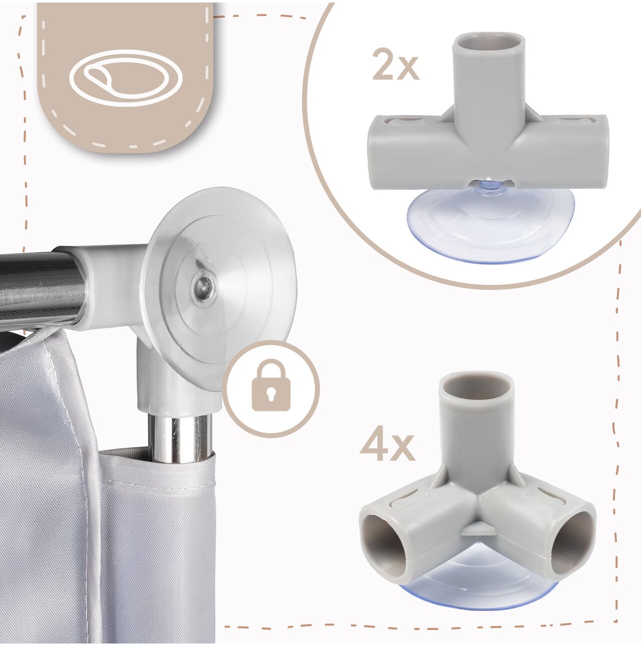 - 4 conectori in coltul inferior cu ventuze