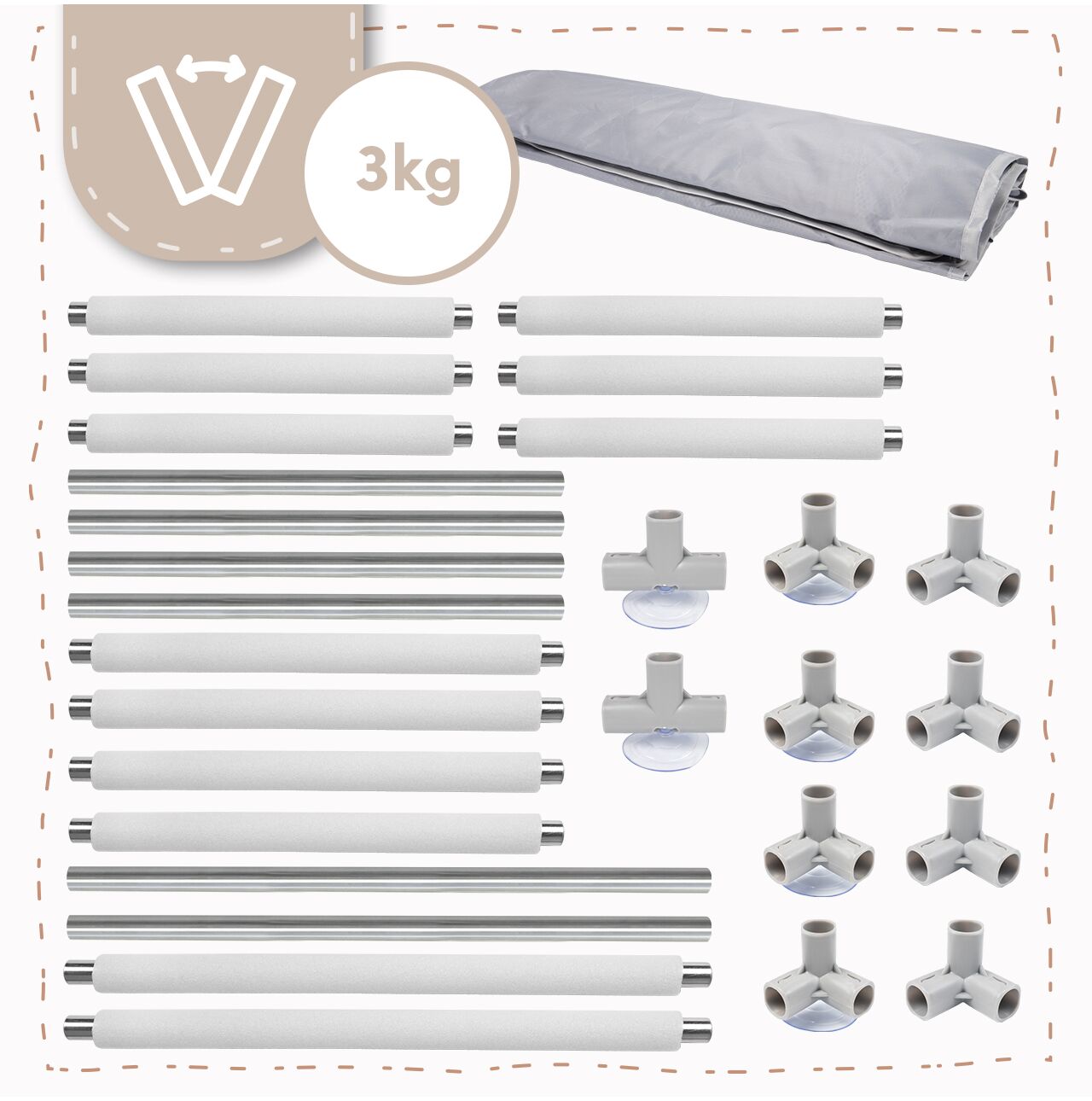 - Material : 100% poliester (invelis), otel (tuburi), PP (conectori)