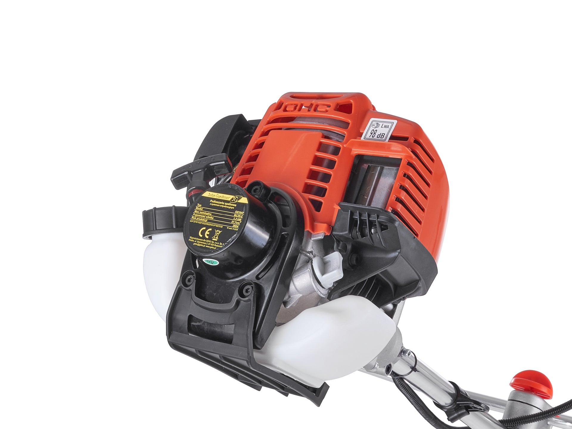 Trimmerul este echipat cu un motor cu ardere in 4 timpi cu o putere nominala de 1,8 CP. In comparatie cu motoarele in 2 timpi, un motor in 4 timpi se caracterizeaza printr-o functionare mult mai buna, produce mai putine vibratii, este mai silentios si, cel mai important, functioneaza cu benzina curata, asa ca nu va mai trebui sa amesteci combustibilul si uleiul.
