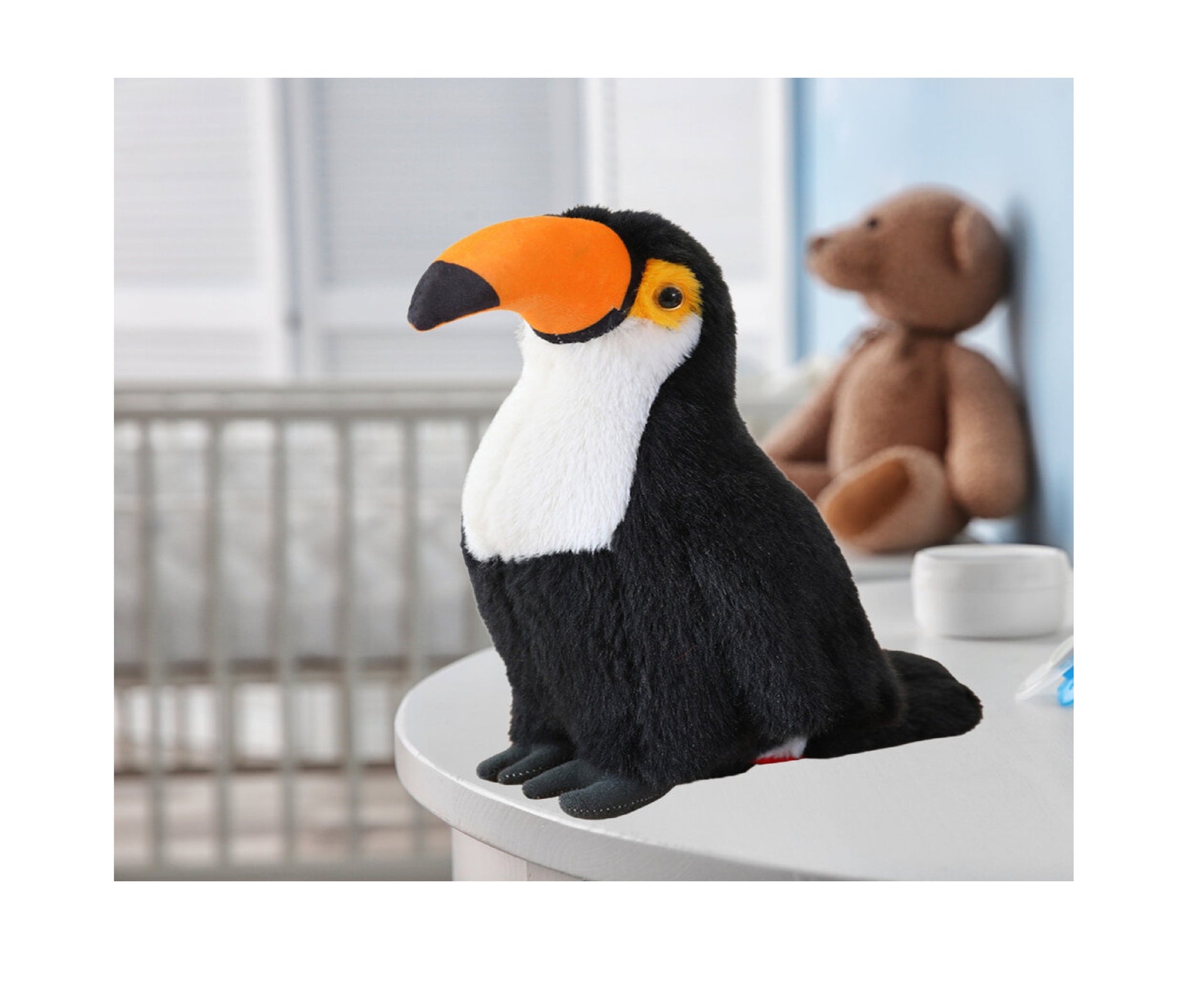 Datorita aspectului sau realist, dimensiunilor compacte si utilizarii universale, tucanul de plus va fi o decoratiune excelenta pentru camera unui copil, un element interesant al colectiei, precum si un cadou extraordinar pentru fiecare mic iubitor de natura, animale tropicale sau pasari exotice. Acesta combina valoarea educativa cu farmecul unei jucarii clasice de plus.