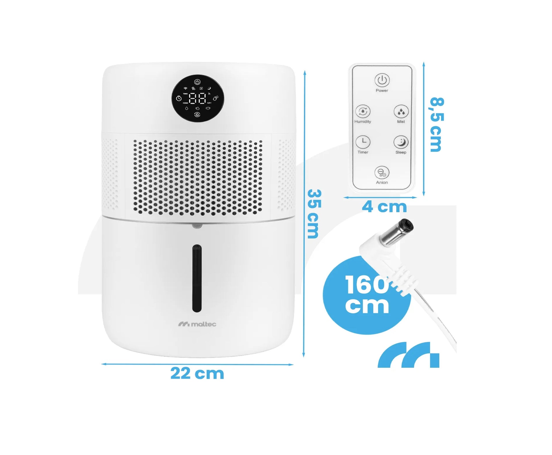 Datorita higrostatului incorporat, dispozitivul va permite sa setati umiditatea tinta in intervalul 40-80% RH (in trepte de 5%) .